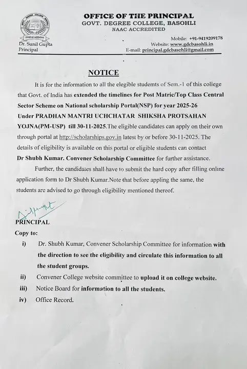 Notice for students of GDC Basohli